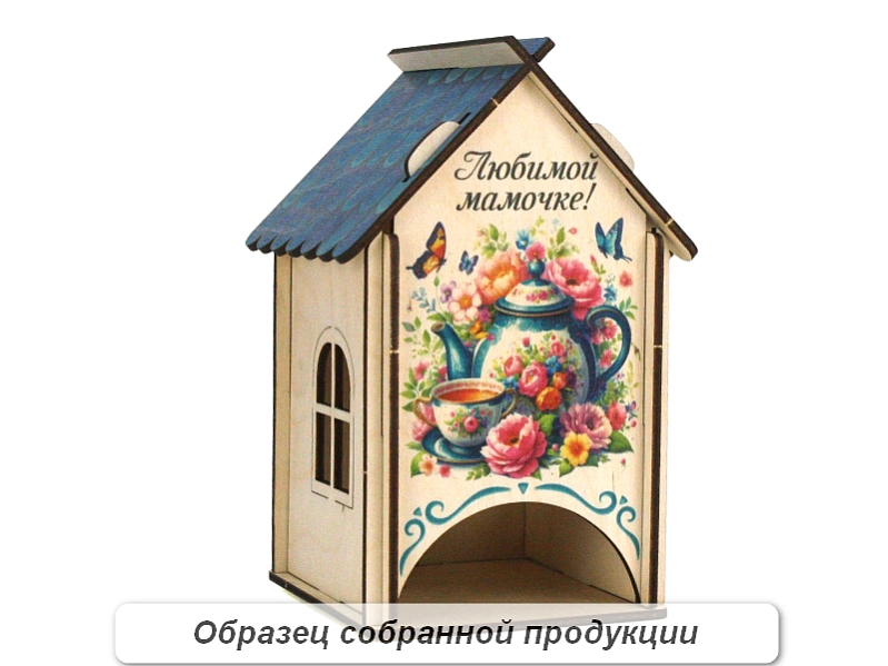 Домик украшен яркой и красочной УФ-печатью с изображением цветов и чайной посуды. 🌸🍵 УФ-печать обеспечивает стойкость изображения и долговечность декора. Этот очаровательный домик станет прекрасным украшением кухни, гостиной или детской комнаты.