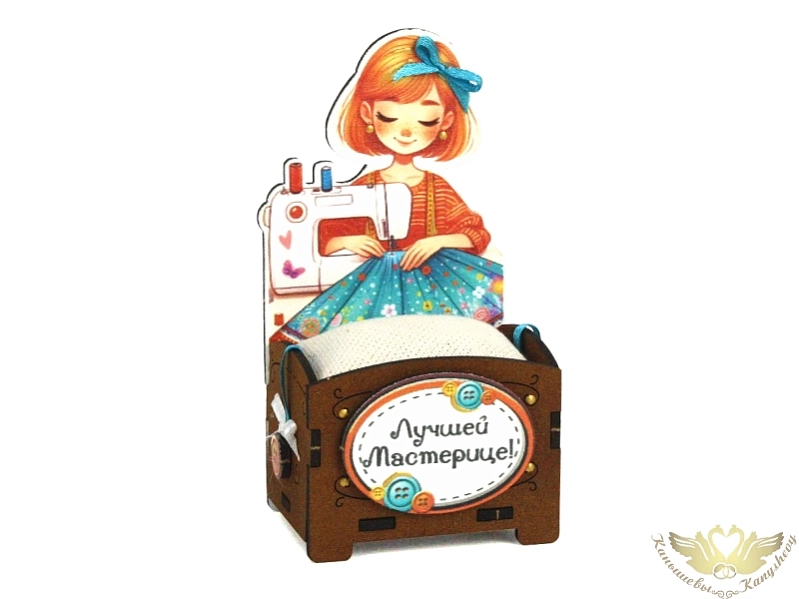 Сув727-02-3700 Игольница "Лучшей мастерице!" (7,5*5,5*13,5) МДФ, УФ печать, окраш. морилкой, оформл., Дуб, 1 шт.