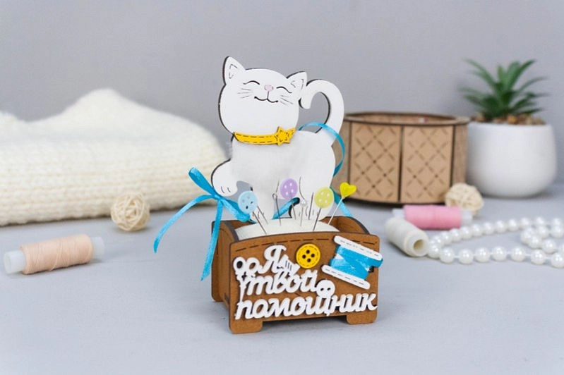 Эта очаровательная игольница в форме котика станет не только практичным, но и стильным дополнением к вашему рабочему месту. Изготовленная из качественного МДФ, она прослужит вам долгие годы. 😻