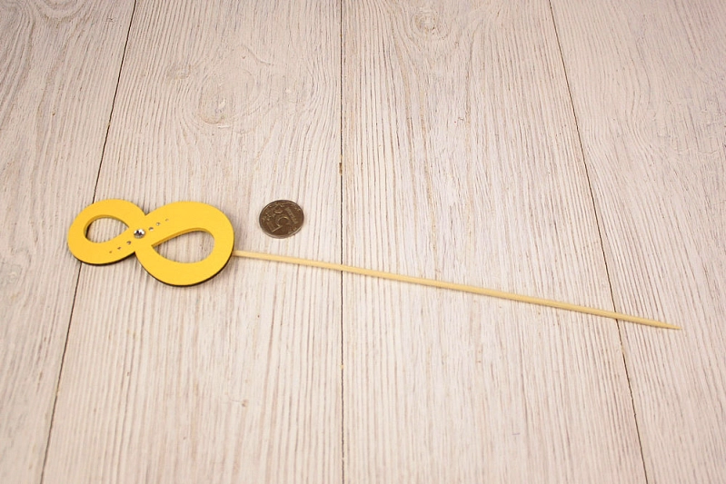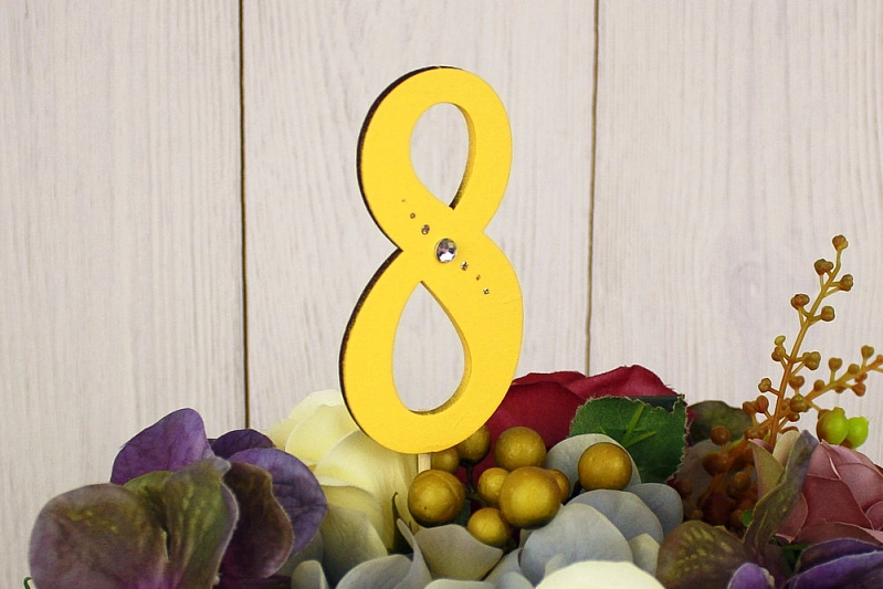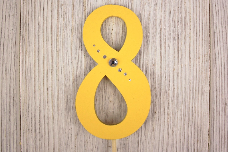 Топпер "8" (5*34) МДФ 3мм, окрашен., оформл., на шпажке, Желтый-серебро, Уп-10 шт.