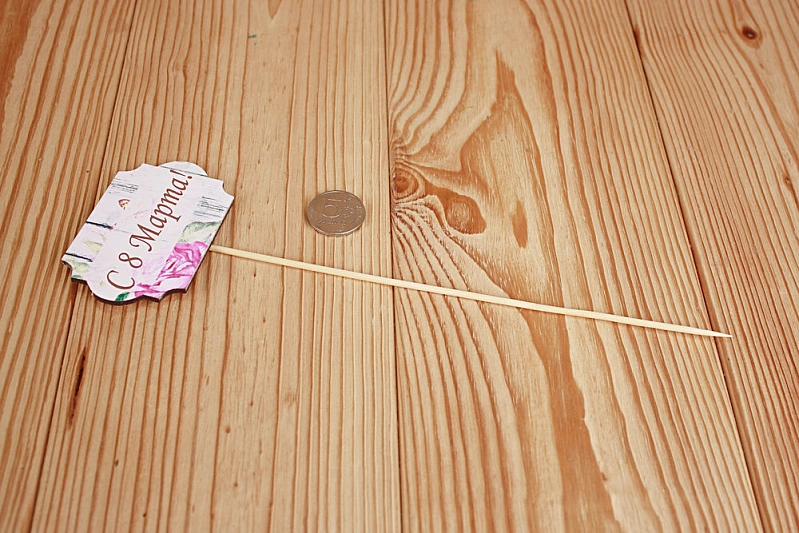 Топпер "С 8 Марта!" классика №1 (8*28) МДФ 3мм, УФ печать, на шпажке, Уп-10 шт.