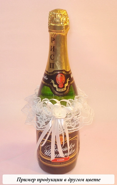 Украшение на шампанское (шир.6см;дл.55см) Кружево, оформл., Белый-сиреневый, 1 шт.