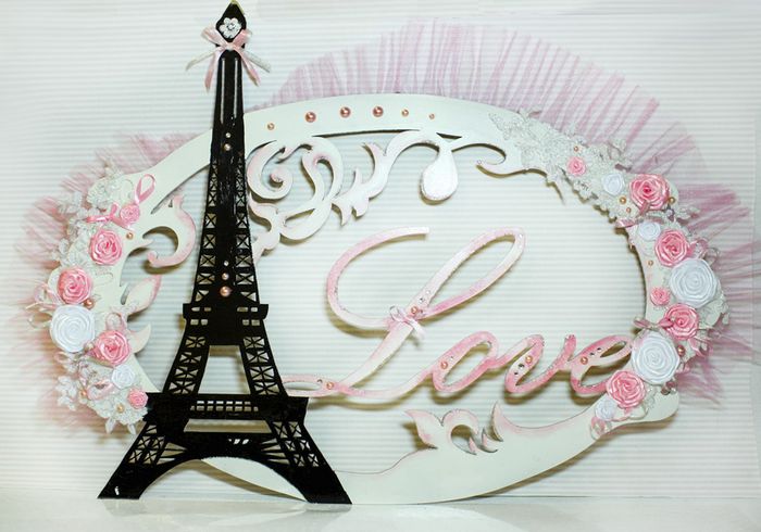 Украшение для зала "ПАРИЖ" большое (шир.75;выс.56см.) МДФ 3мм, окрашен., оформл., Белый-розовый, 1 ш