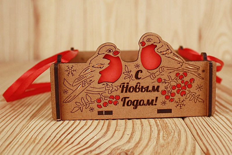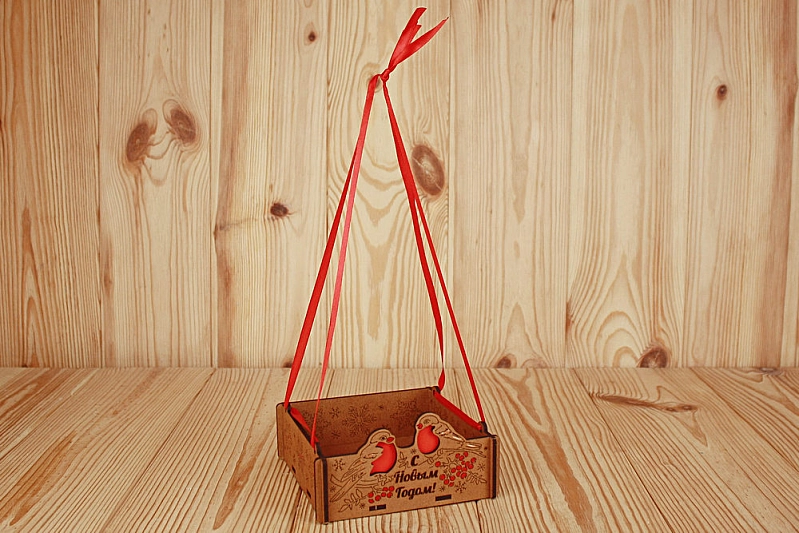 Сув626-00-3706Нс Кормушка для птиц "Снегири" МИНИ (14*14*7) МДФ 3мм, окрашен. морилкой, оформл., Дуб-красный, 1 шт. БЕЗ СБОРКИ