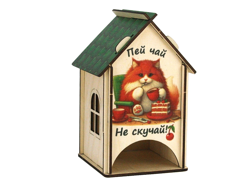 Этот очаровательный чайный домик, выполненный из качественной фанеры толщиной 3мм, станет прекрасным акцентом в интерьере и подарит хорошее настроение. 🏡 Яркий и позитивный дизайн с изображением милого котика, выполненный методом УФ-печати, добавит тепла и уюта вашей кухне или столовой.