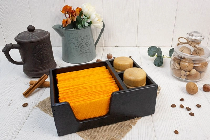 Эта салфетница – идеальное решение для организации пространства на кухне, в столовой или кафе. Изготовленная из качественного дерева и фанеры, она сочетает в себе прочность, долговечность и эстетичный внешний вид. 🤩