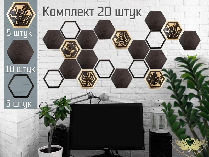 - Комплект: Набор включает 20 панелей, что позволяет реализовать самые смелые дизайнерские идеи.