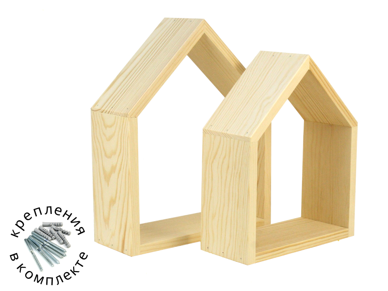 Набор полок "домики" (27*33,5*10; 23*28,5*10) дерево, неокраш, набор-2 шт.