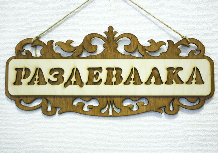Табличка для бани "Раздевалка", резная (35*15) Фанера 3мм, окрашен. морилкой, оформл., Дуб, 1 шт.