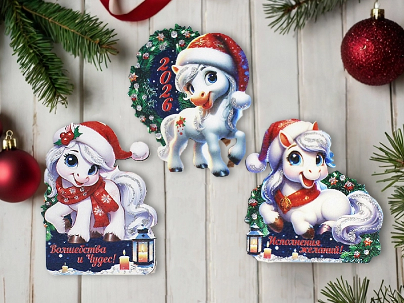 Сув803-00-0000 Набор магнитов "Милые лошадки. 2026". МДФ, УФ печать, Набор 3 шт.