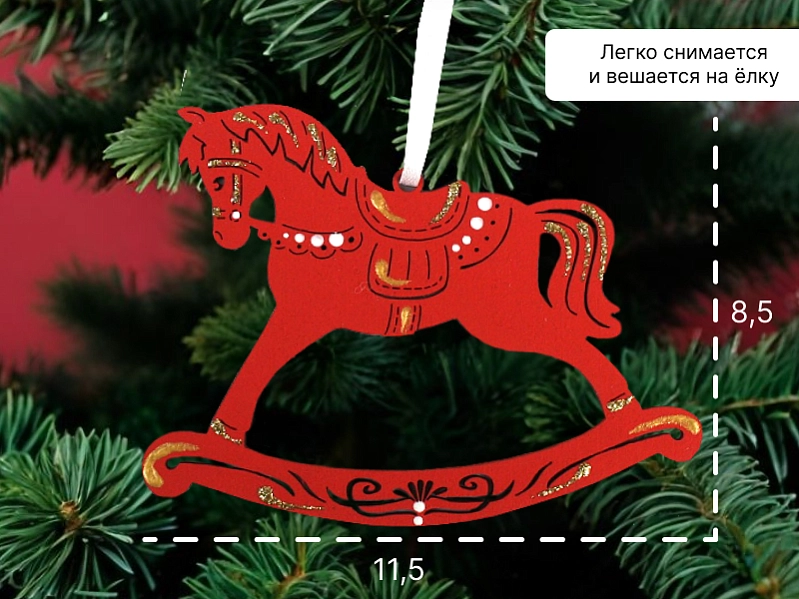 Внутри коробки находится прекрасная ёлочная игрушка "Лошадка", которая станет замечательным сувениром и украшением новогодней ёлки. 🐴 Эта коробка идеально подходит для подарков друзьям, родственникам и коллегам. 🌟