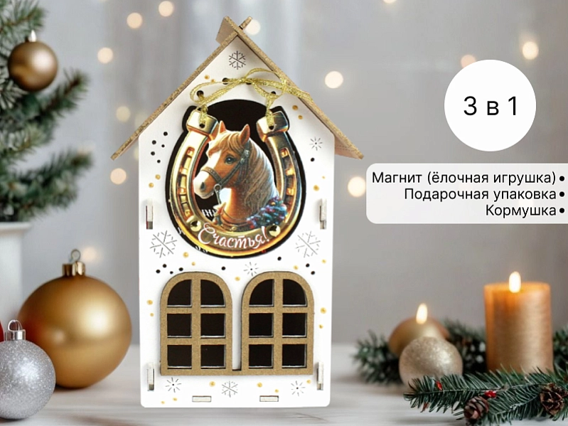 - Дизайн: Оригинальный дизайн в форме домика с изображением подковы создает атмосферу уюта и тепла.