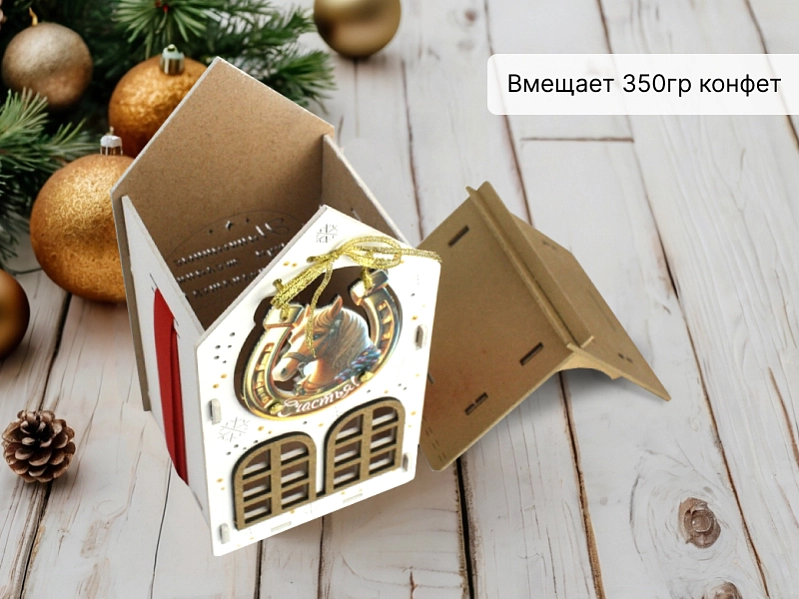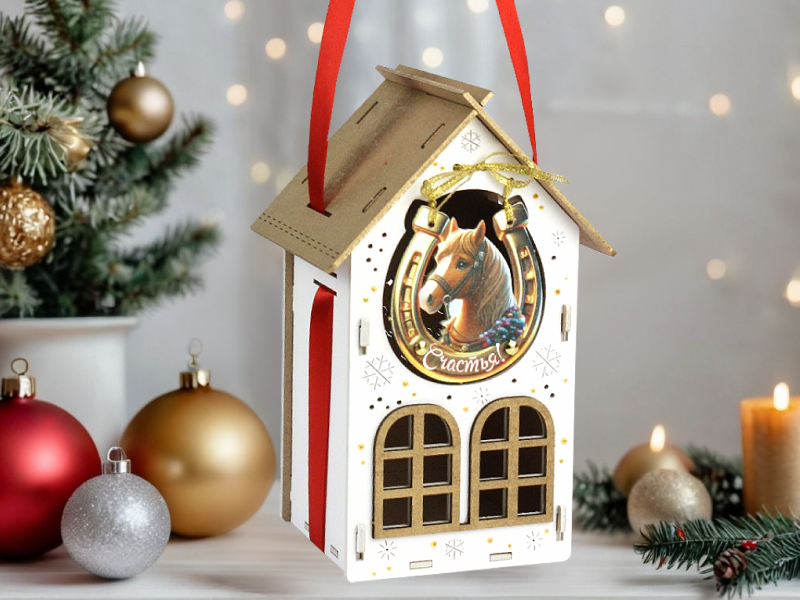 Подарочная упаковка "Новогодний домик с магнитом "Подкова"
