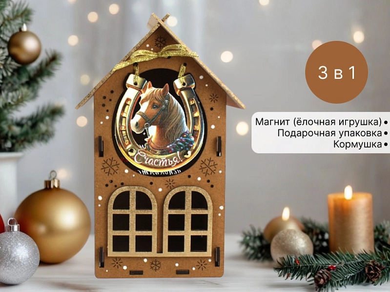 Внутри домика расположен магнит в форме подковы, который станет приятным бонусом для получателя. 🐴 Эта упаковка не только украсит ваш подарок, но и создаст праздничное настроение! 🎉