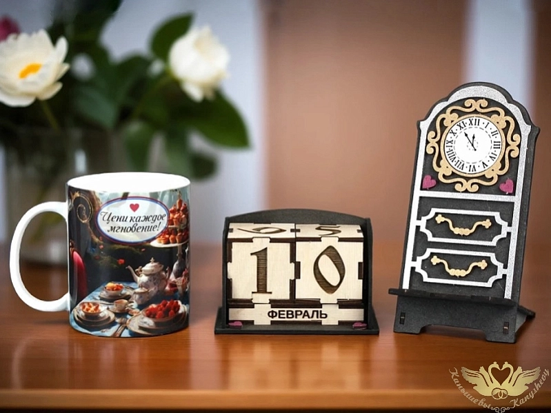 Сув867-00-0000 Подарочный набор "Цени каждое мгновение" в коробке (коробка 20*18*10 см; кружка+подставка для телефона+календарь+магнит)