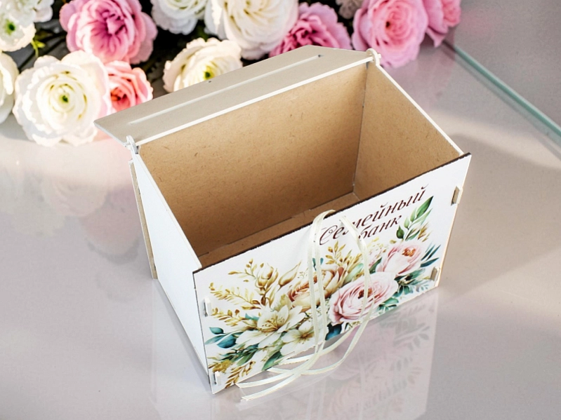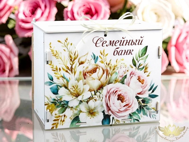 Б224-02-0304 Семейный банк "Розы" (21,5*13,5*17,5) МДФ 3мм, УФ печать, окраш., оформл., Белый-шампань, 1 шт.