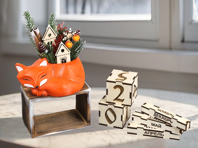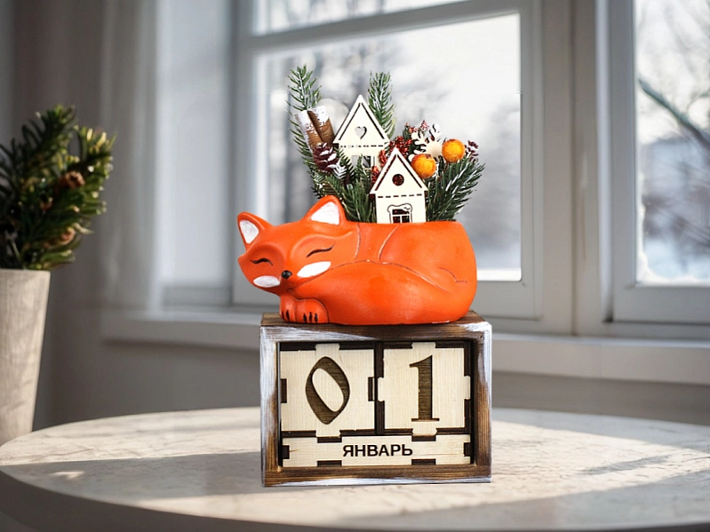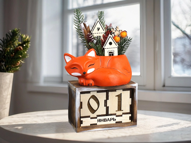Сув854-02-3315 Вечный календарь "Лисичка" (12*8*20) Дерево, гипс, с обжигом, оформл., 1шт.