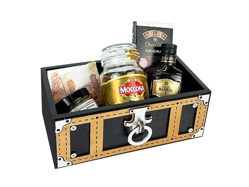 - Оформление: Ящик окрашен морилкой и оформлен, что придает ему изысканный вид.