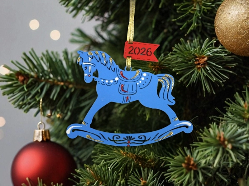 Ёлочное украшение "Лошадка. 2026" (11,5*8,5) Синий-красный, 1 шт.