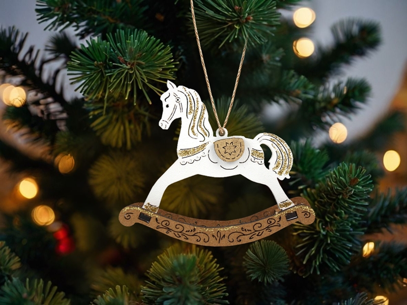 Ёлочное украшение "Лошадка-качалка" (9*2,5*8) Белый-дуб, 1 шт.