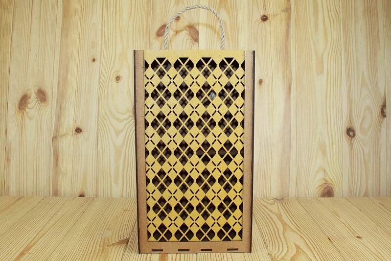 ПУ551-00-3736 Подарочная коробка-пенал "Ромбы" с джутовой ручкой (20*11,7*35,5) МДФ 3мм, окрашен. морилкой, оформл., Дуб-лимон, 1 шт.