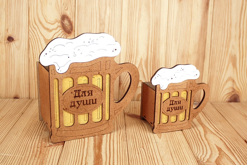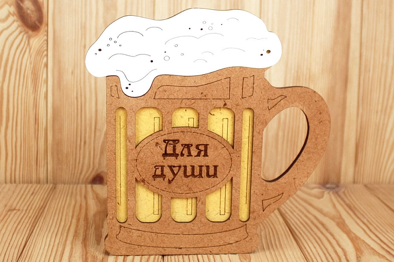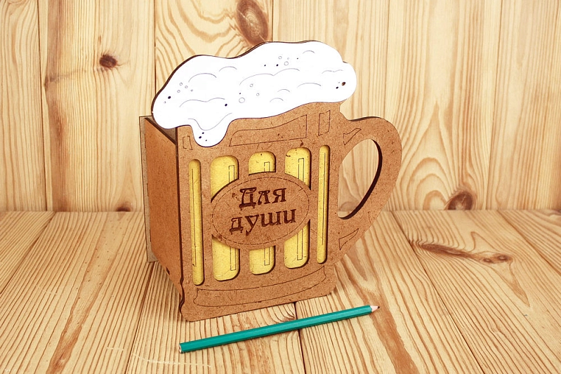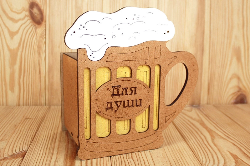 ПУ709-02-3736 Подарочная упаковка-кружка пивная "Для души" большая (21,5*13*22) МДФ 3мм, окрашен. морилкой, оформл., Дуб-лимон, 1 шт.