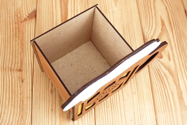 Изготовленная из качественного МДФ толщиной 3 мм, эта упаковка прочна и надежна. Она окрашена морилкой и оформлена с особой тщательностью, что придает ей элегантный вид. Сочетание цветов Дуб-лимон создаёт теплую и уютную атмосферу.