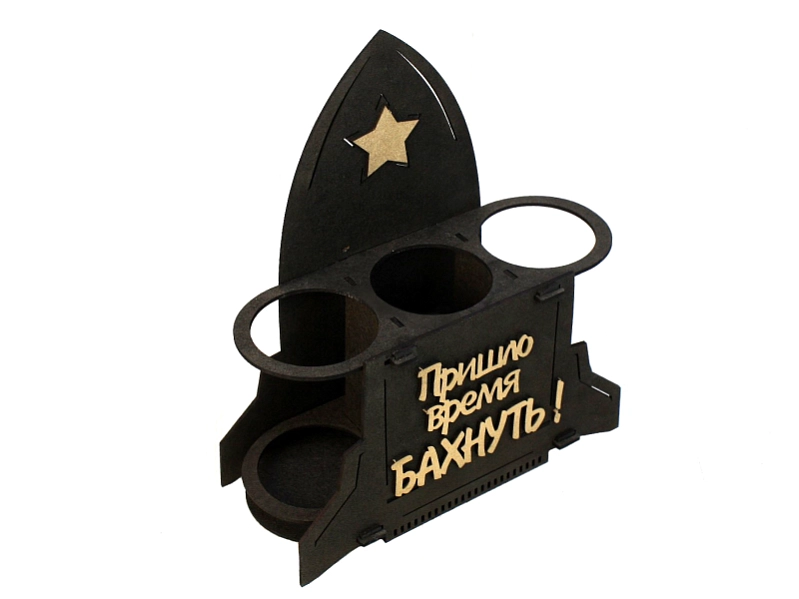 ПУ877-02-5001 Подарочная упаковка "Ракета" №1 (22,5*10,5*26) МДФ, окраш. морилкой, оформл., Чёрный-золото, 1 шт.