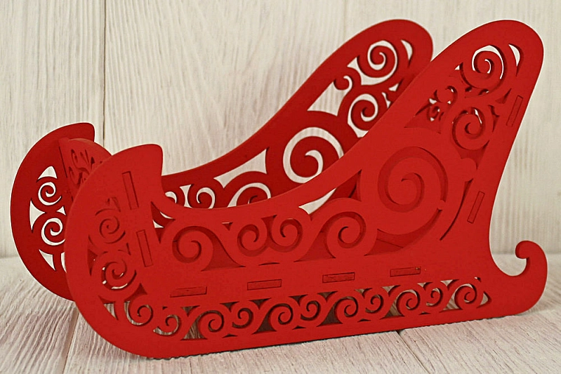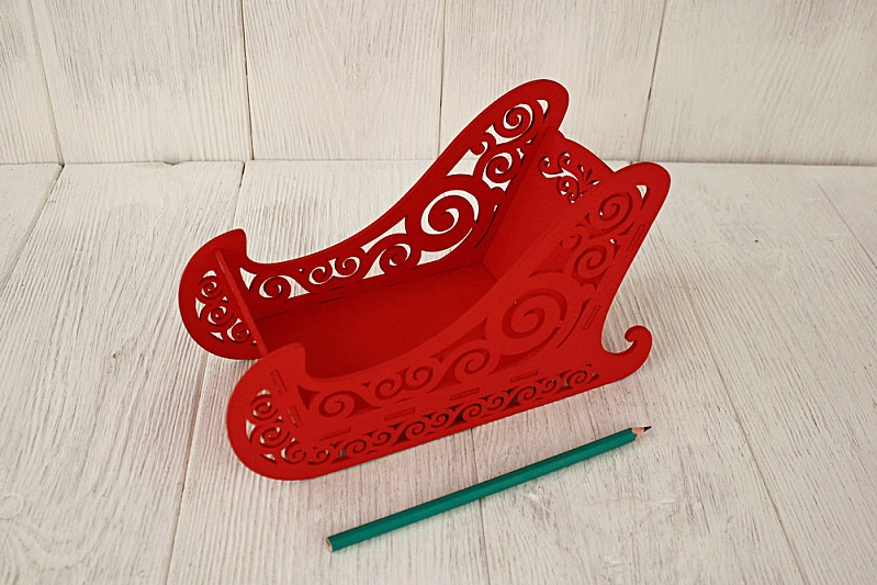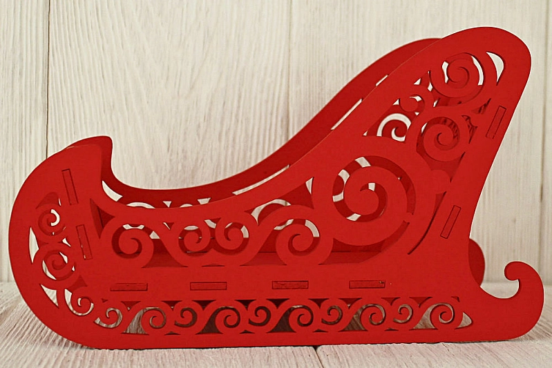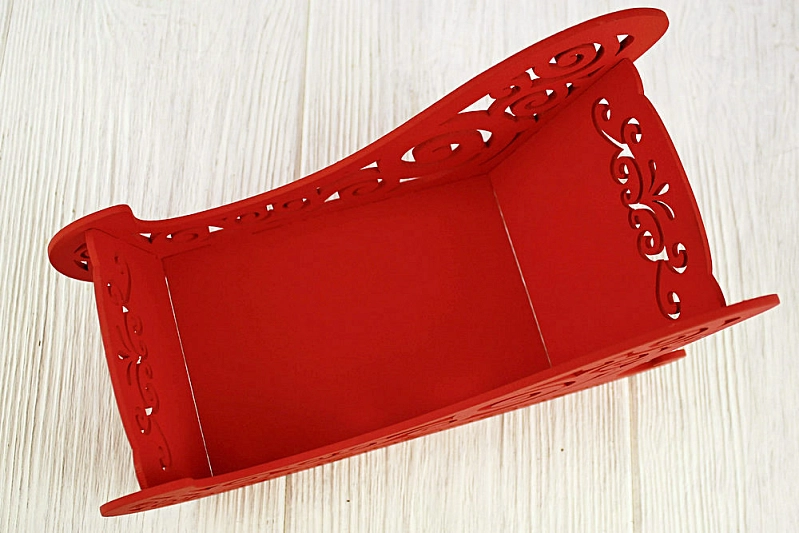 ПУ601-02-0606 Подарочная упаковка "Сани" МИНИ, с вензелями (23*10*14) МДФ 3мм, окрашен., Красный, 1 шт.