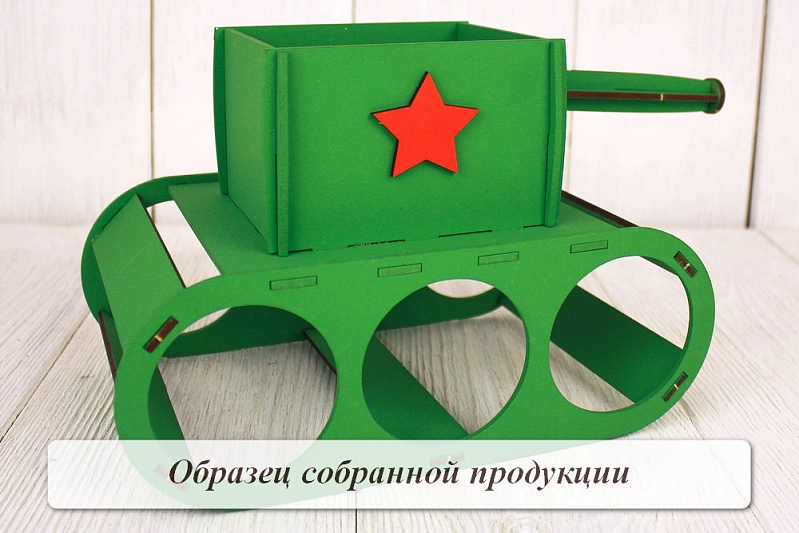 Пу696-02-1206Нс Подарочная упаковка "Танк" (28*13,5*15,5) МДФ 3мм, окрашен., оформл., Зелёный-красный, 1 шт. БЕЗ СБОРКИ