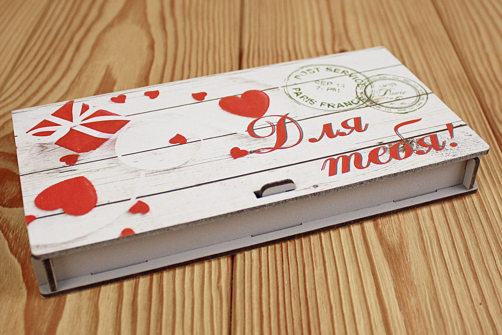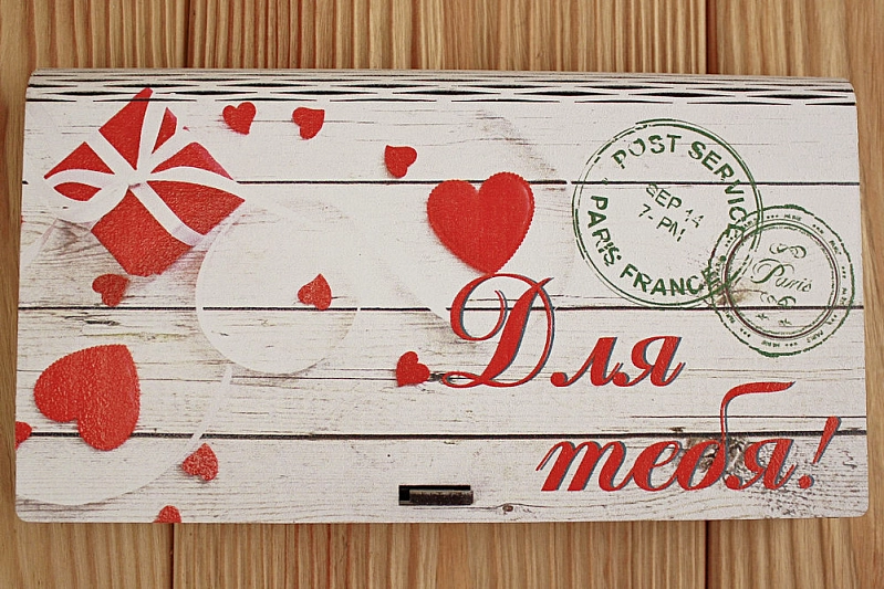 Сув611-02-4700 Купюрница "Для тебя!" (19*10,5*2,8) МДФ 3мм, УФ печать, окраш., оформл., Серый пастель, 1 шт.