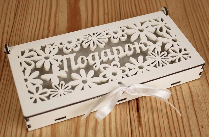 Купюрница "Подарок" с цветами (18,5*9*3) МДФ 3мм, окрашен., оформл., Белый-белый, 1 шт.