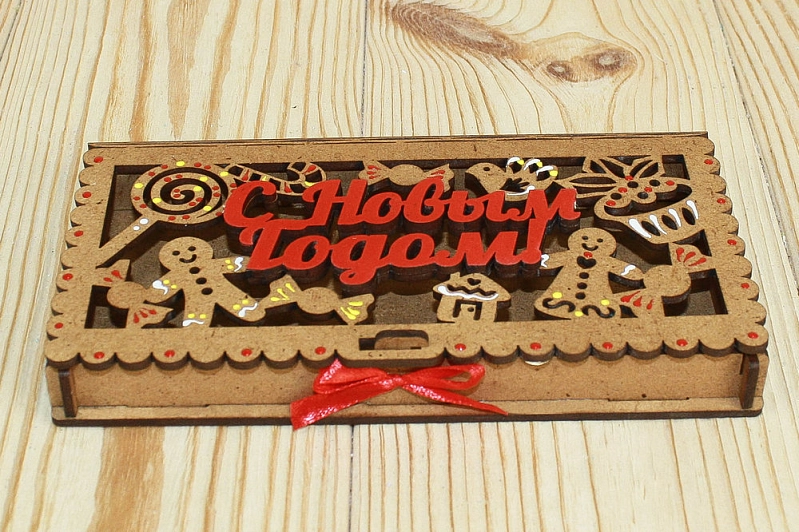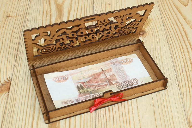 Купюрница "Пряничная" (19*10,5*2,5) МДФ 3мм, окрашен. морилкой, оформл., Дуб-красный, 1 шт.