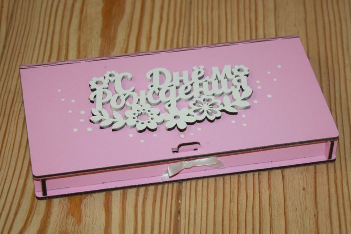 Купюрница "С Днём рождения" с цветами (19*10,5*2,5) МДФ 3мм, окрашен., оформл., Розовый-белый, 1 шт.