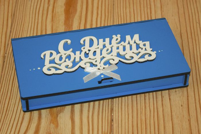 Купюрница "С Днём рождения" с вензелем (19*10,5*2,5) МДФ 3мм, окрашен., оформл., Синий-белый, 1 шт.
