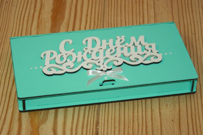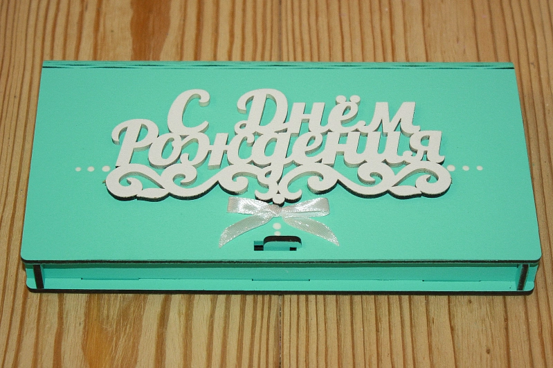 Купюрница "С Днём рождения" с вензелем (19*10,5*2,5) МДФ 3мм, окрашен., оформл., Тиффани-белый, 1 шт