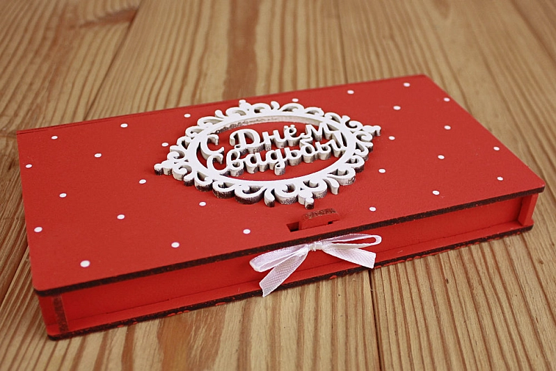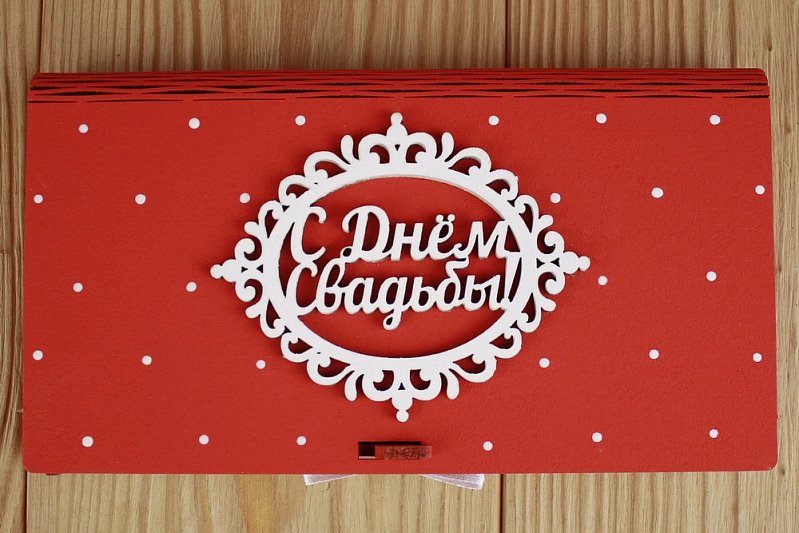 Купюрница "С Днём Свадьбы!" (19*10,5*2,2) МДФ 3мм, окрашен., оформл., Красный-белый, 1 шт.