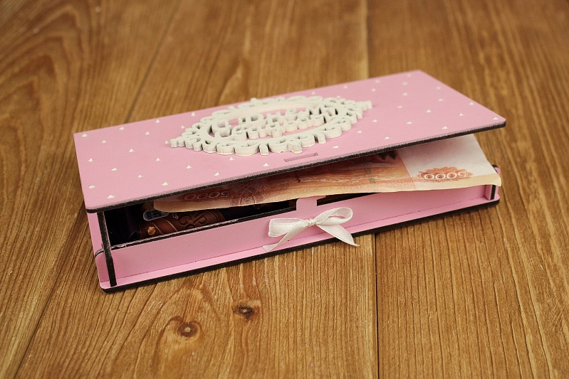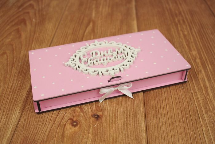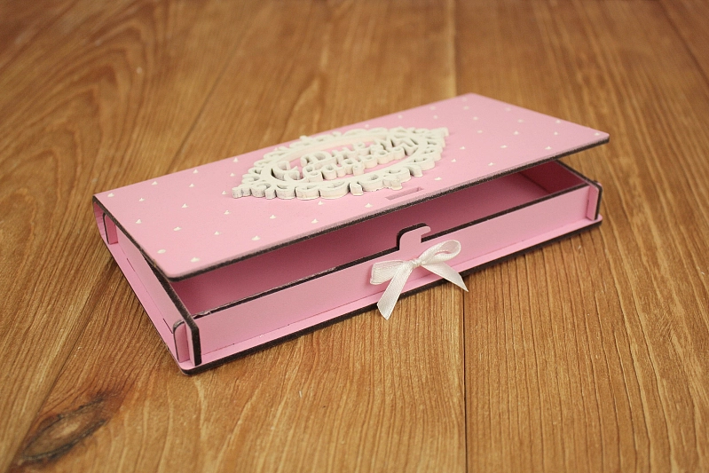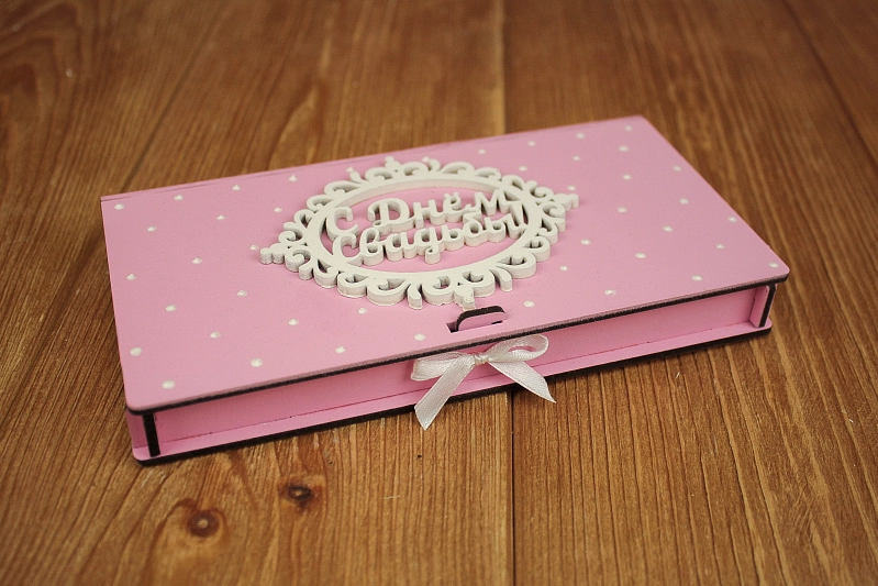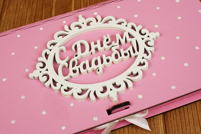 Купюрница "С Днём Свадьбы!" (19*10,5*2,2) МДФ 3мм, окрашен., оформл., Розовый-белый,1 шт.