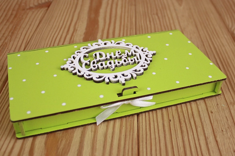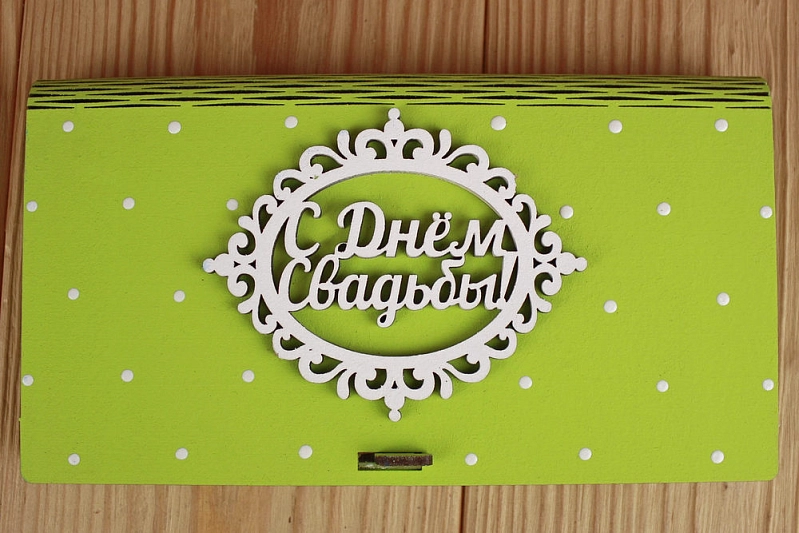 Купюрница "С Днём Свадьбы!" (19*10,5*2,2) МДФ 3мм, окрашен., оформл., Салатовый-белый, 1 шт.
