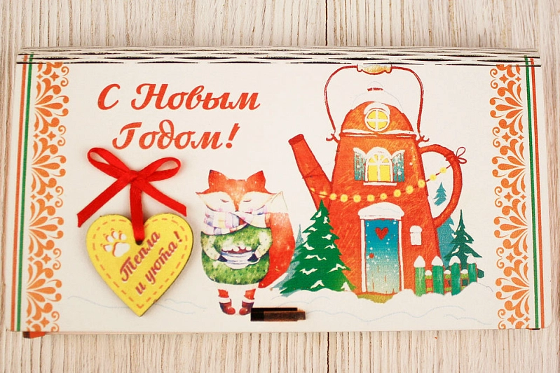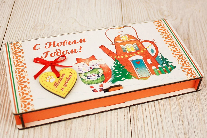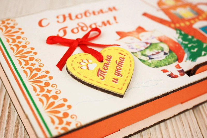 Сув632-02-1506 Купюрница "С Новым годом!" с сердечком (19*10,5*2,8) МДФ 3мм, УФ печать, окраш., оформл., Оранжевый-красный, 1 шт.