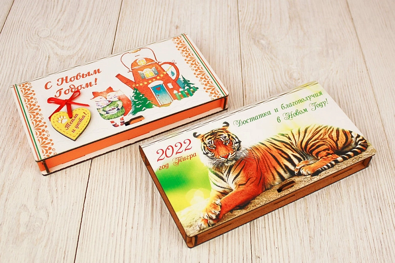 Купюрница "С Новым годом!" с сердечком (19*10,5*2,8) МДФ 3мм, УФ печать, окраш., оформл., Оранжевый-красный, 1 шт.
