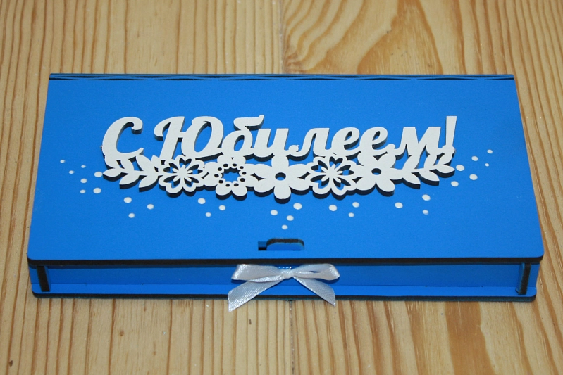 Купюрница "С Юбилеем" с цветами (19*10,5*2,5) МДФ 3мм, окрашен., оформл., Синий-белый, 1 шт.