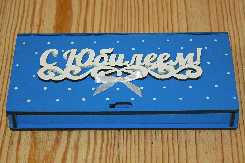 Купюрница "С Юбилеем" с вензелем (19*10,5*2,5) МДФ 3мм, окрашен., оформл., Синий-белый, 1 шт.