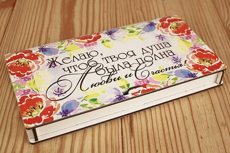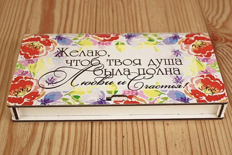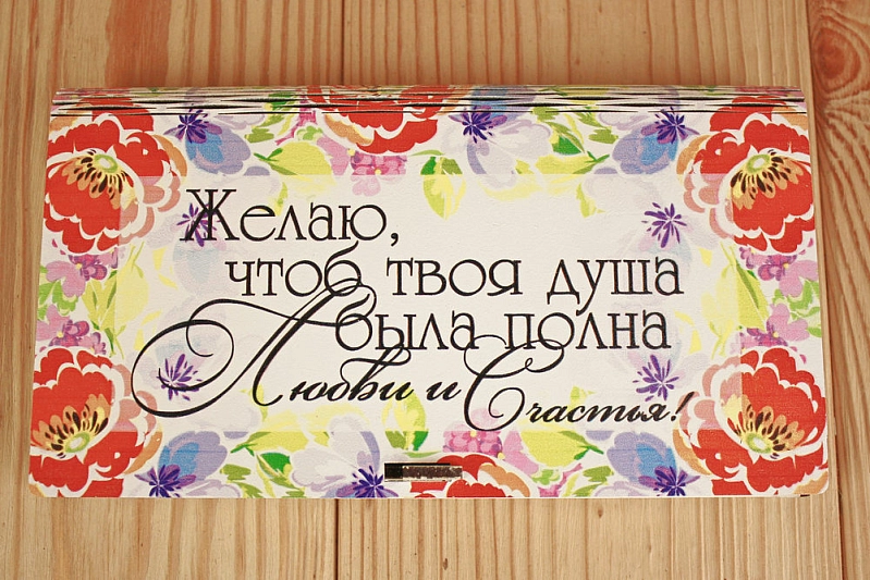 Купюрница "Желаю чтоб твоя душа ...." с печатью (19*10,5*2,8) МДФ 3мм, УФ печать, окраш., оформл.,