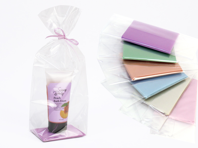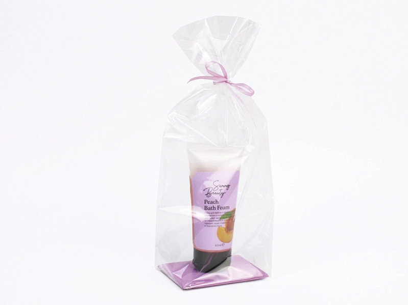 ПкМ-00-0000Пр Пакет на жестком дне МИНИ, прозрачный (дно 8*6; выс.27см) Картон, плёнка метал., оформл., Ассорти, Уп-12 шт.