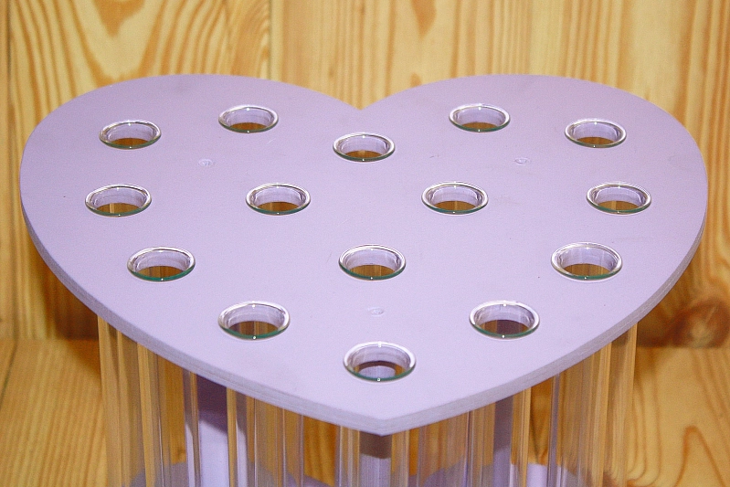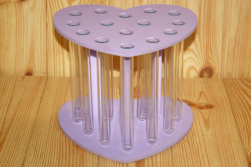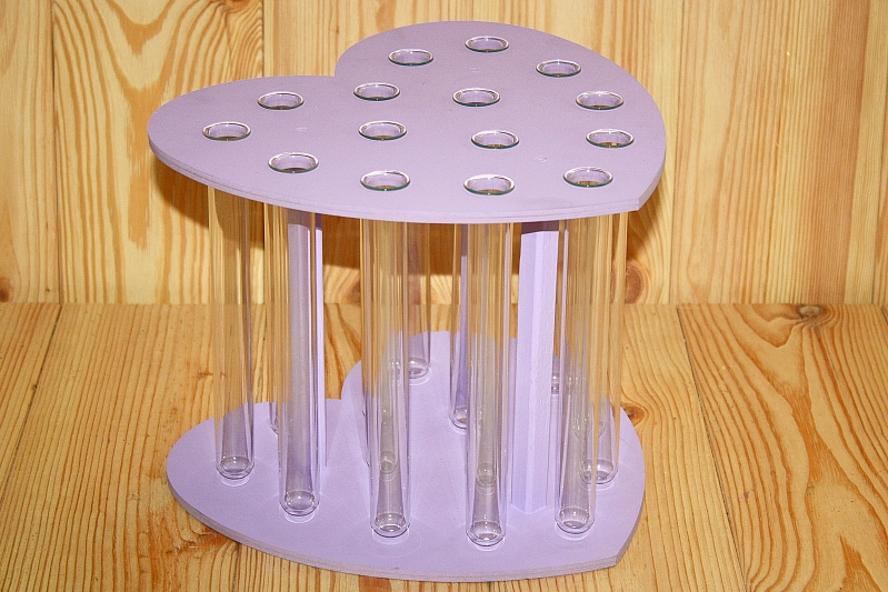Колбы для цветов в подставке "Сердце" на 15 шт. (27*25*20,5) Дерево, МДФ 3мм, окрашен., Сиреневый, 1