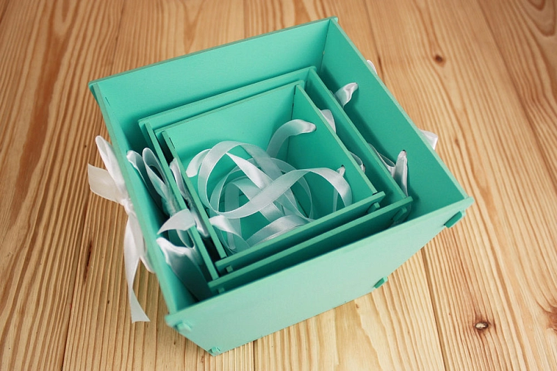 - Оформление: Коробки окрашены и оформлены, что придает им элегантный и нарядный вид.