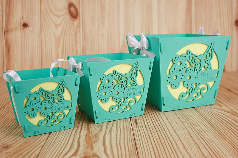 ПУ617-02-2603 Набор подарочной упаковки "Лети, цвети!" (16*15,5*14; 12*12*10,5; 10*10,5*9) МДФ 3мм, окрашен., оформл., Тиффани-белый, Набор 3 шт.