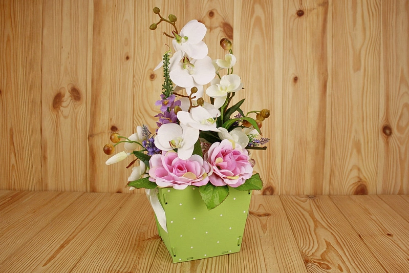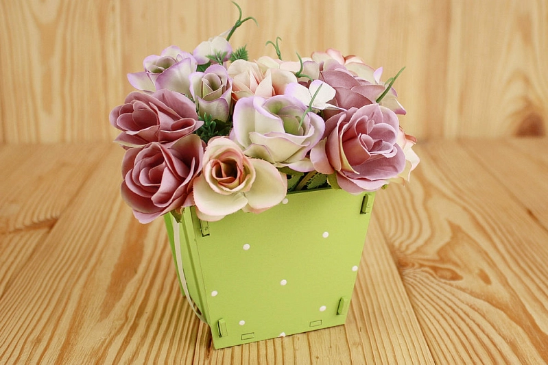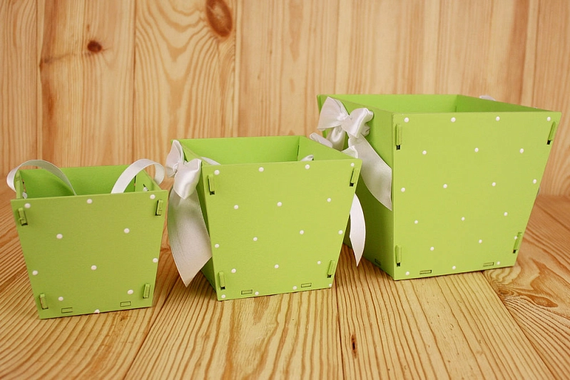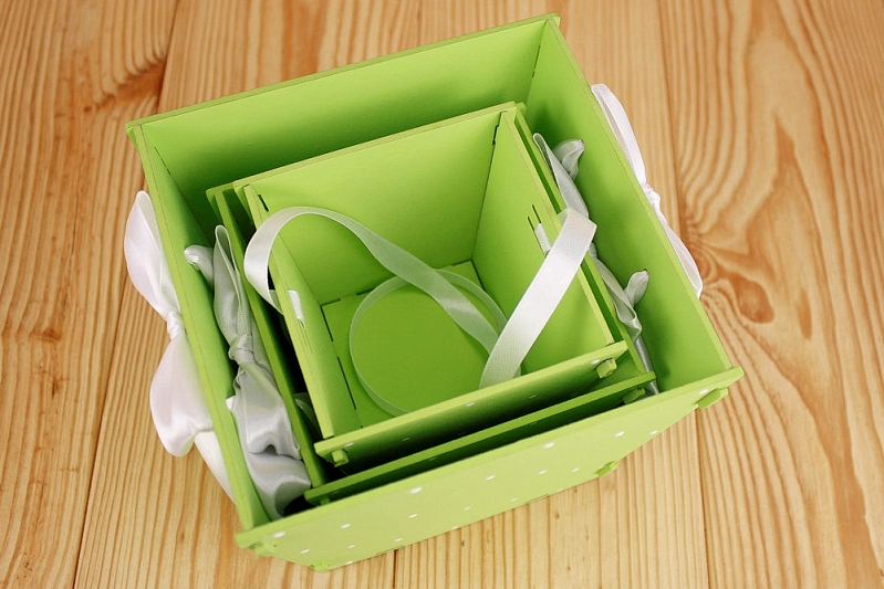 ПУ538-02-1303 Набор подарочной упаковки в горошек (16*15,5*14; 12*12*10,5; 10*10,5*9) МДФ 3мм , окрашен., оформл., Салатовый-белый, Набор 3 шт