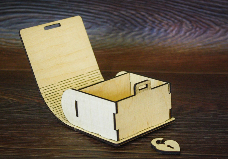 ПУ104-00-0000 Подарочная коробка-книжка с замочком №1 (8*8*4,5) Фанера 3мм, неокраш., оформл. 1 шт.